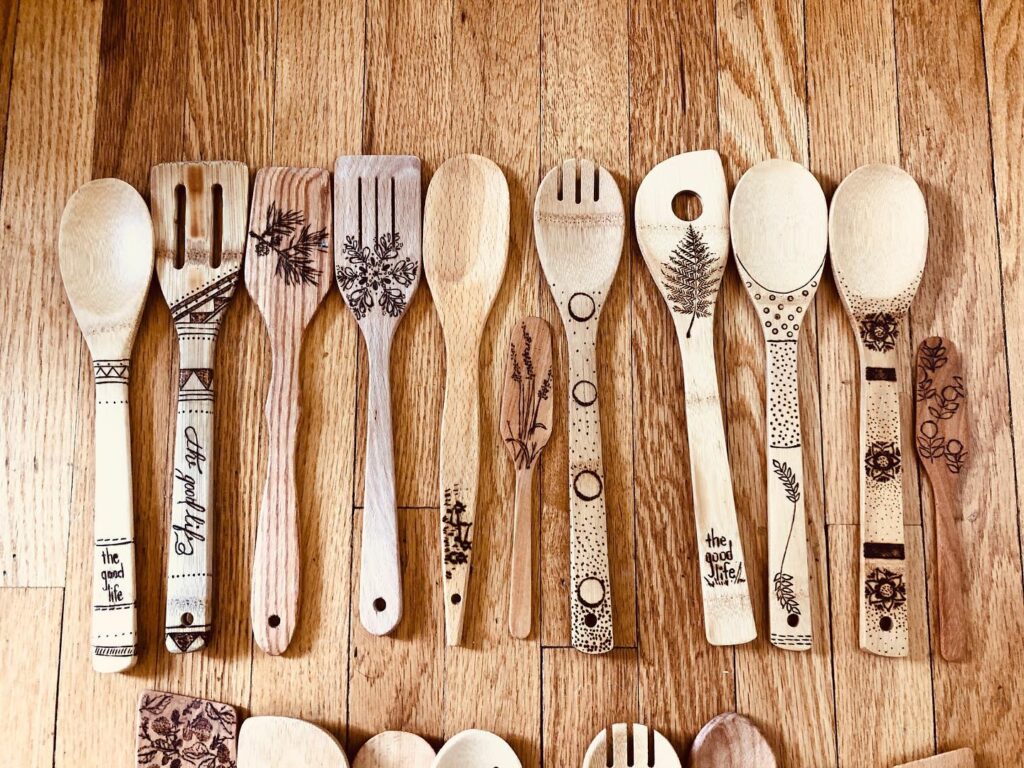 In addition to raising goats, the Harmon’s keep a flock of chickens for eggs and some years they raise pigs or the occasional sheep or calf. Amii also creates homemade goods to share with guests, including honey ambrosia, goat milk soap, aprons, and beautiful wooden spoons.